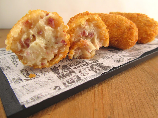 croquetas por el huevo y después por el pan rallado crujiente y freír en aceite